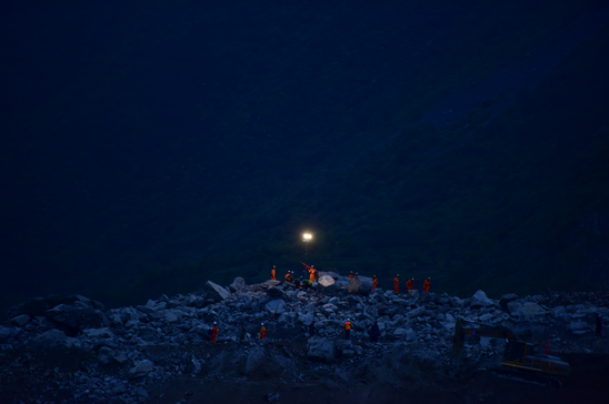 照亮了黝黑的茂縣山體垮塌救援現(xiàn)場(chǎng),