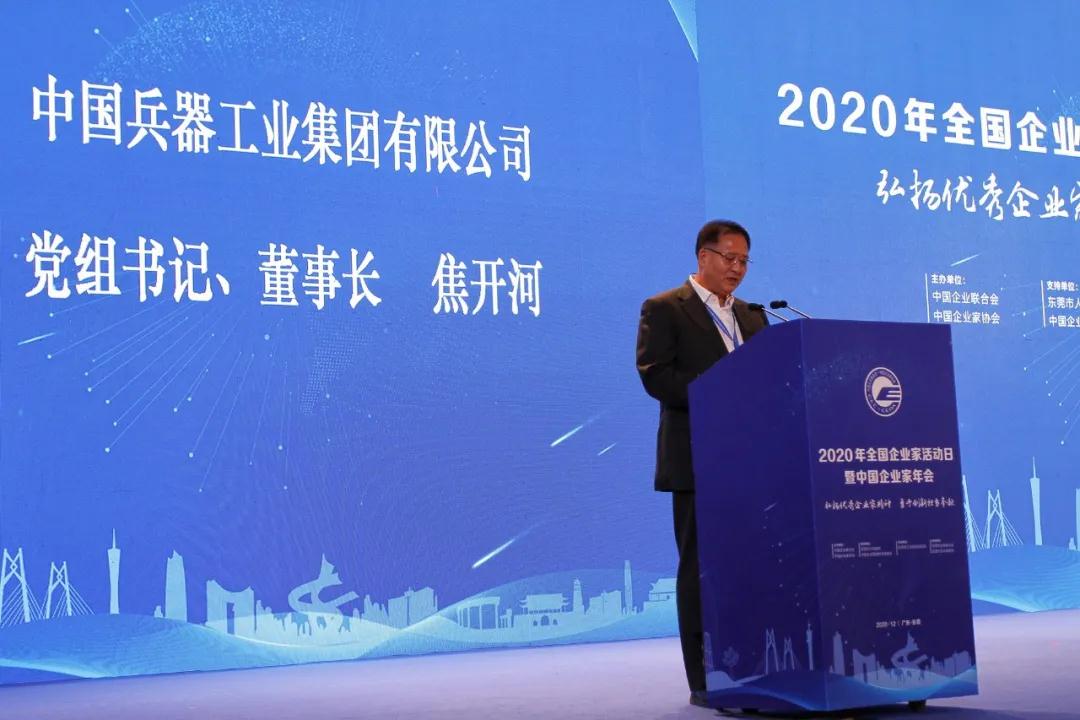 12月1日,2020年全國企業(yè)家活動日暨中國企業(yè)家年會大會在廣東東莞舉辦,第十屆全國政協(xié)副主席、中國企業(yè)家聯(lián)合會、中國企業(yè)家協(xié)會會長王忠禹出席會議并作主旨講話,中國企聯(lián)常務(wù)副會長兼理事長朱宏任主持會議。中國兵器工業(yè)集團(tuán)有限公司黨組書記、董事長焦開河受邀出席大會并發(fā)表演講。