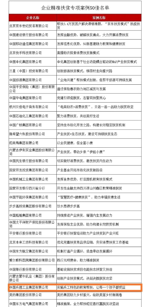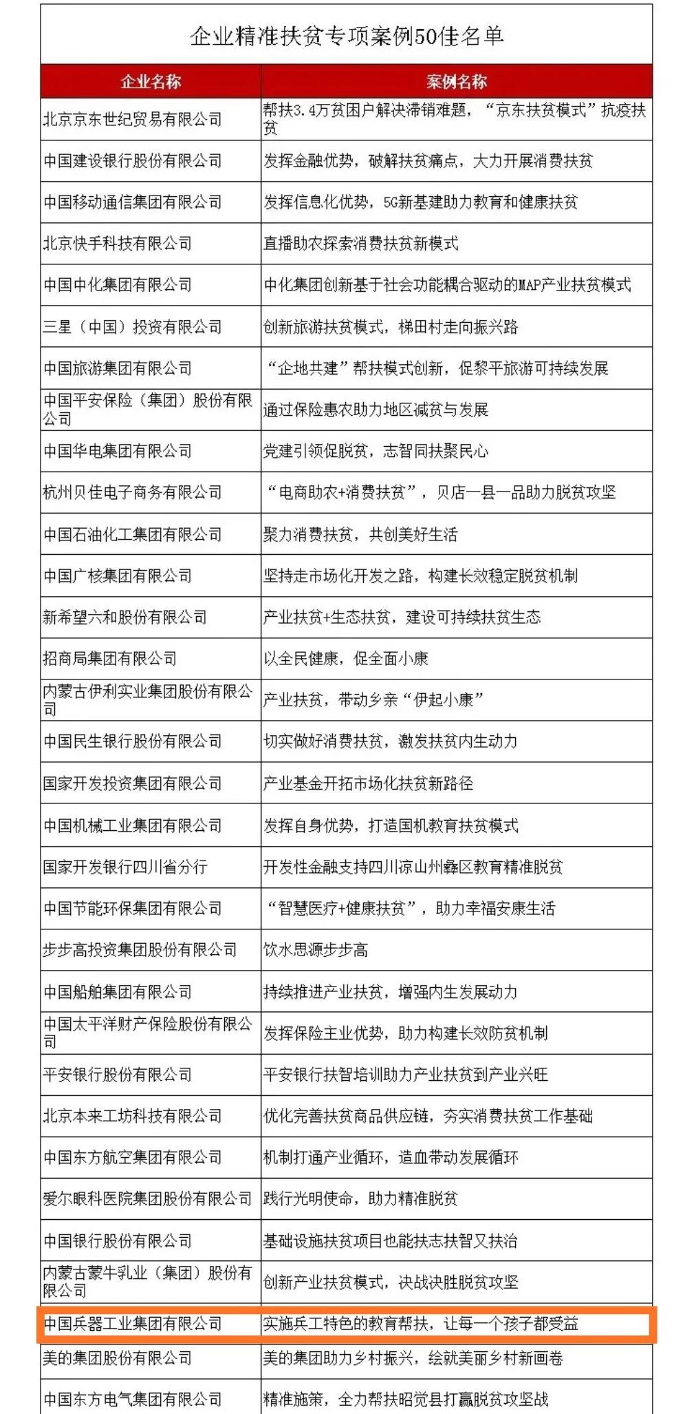兵器工業(yè)集團(tuán)教育扶貧獲評(píng)國務(wù)院扶貧辦2020年企業(yè)精準(zhǔn)扶貧專項(xiàng)案例“50佳”