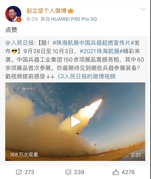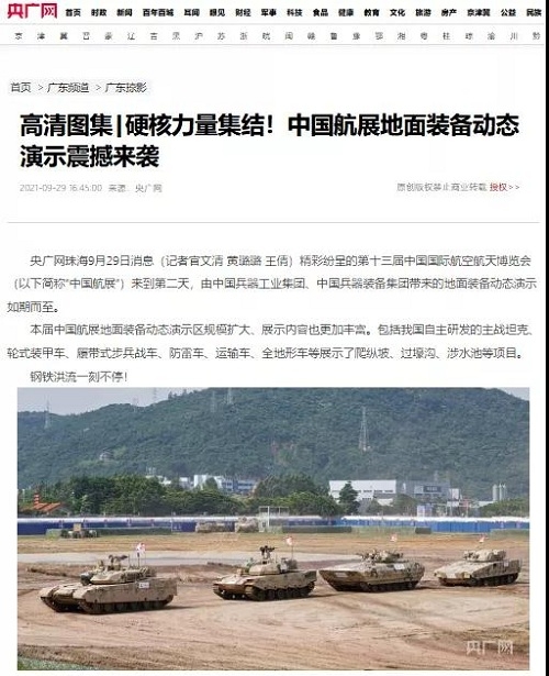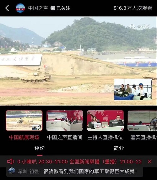 9月28日-10月3日,第十三屆中國國際航空航天博覽會在廣東珠海舉行,中國兵器工業(yè)集團有限公司作為主辦單位閃耀亮相,推出裝甲突擊、火力打擊、智能彈藥、防空反導、無人裝備、非傳統(tǒng)安全、軍工軍技合作等領域新產品及成體系成建制武器系統(tǒng)和解決方案,全方位展示我國陸軍外貿武器裝備的最高水平以及雄厚的科技創(chuàng)新、自主研發(fā)與先進制造能力,受到廣泛關注。 央視《新聞聯(lián)播》報道第十三屆中國航展,著重介紹了VT4主戰(zhàn)坦克,關注航展公眾日中國兵器館情況。9月28日下午央視《新聞直播間》航展特別節(jié)目《藍天盛會》邀請集團公司訪談嘉賓做客直播間對中國兵器館兵器工業(yè)集團展區(qū)等進行1小時直播;9月28日下午、10月2日下午分別對地面裝備動態(tài)表演進行兩場直播。央視《朝聞天下》、《新聞直播間》、《共同關注》、《天下財經》、《軍事報道》、《正午國防軍事》、《軍武零距離》等相繼推出集團公司參展裝備的報道。 人民日報、新華社、中國日報、共青團中央、國資小新、騰訊軍事、鳳凰軍事、新浪軍事等新媒體發(fā)布的集團公司航展宣傳片等視頻作品燃爆全網,閱讀量突破三千萬人次,得到外交部發(fā)言人趙立堅轉載點贊。集團公司微信、微博、抖音號、微信視頻號等新媒體宣傳片播放閱讀量超過400萬人次。同時,央視新聞、新華社、中國之聲、央視軍事、央視新媒體、解放軍報、共青團中央、國資小新、環(huán)球時報等多家媒體對集團公司靜、動態(tài)展區(qū)進行現(xiàn)場直播,在電視端、客戶端、微信視頻號、微博、B站、快手、抖音等平臺受到高度關注。著名軍事專家杜文龍、央視主持人顧國寧、央廣中國之聲主持人王藝等直播兵器館、動態(tài)表演區(qū)裝備。 《參考消息》、新華網、央廣網、中國日報、科技日報、解放軍報、人民網、中國新聞網、中國青年網、中國網、中工網、央視網、環(huán)球網、騰訊網、新浪網、鳳凰網、搜狐網、網易網、今日頭條等中央主流媒體和知名網絡媒體以及南方日報、廣東電視臺、北京電視臺、新京報、珠海傳媒集團、深圳衛(wèi)視等省市媒體對集團公司參展情況進行了圖片、文字、視頻報道。 航展期間,備受關注的中國兵器館,參觀的觀眾絡繹不絕。 |