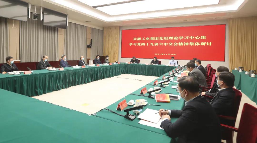 11月30日,中國(guó)兵器工業(yè)集團(tuán)有限公司黨組書記、董事長(zhǎng)焦開(kāi)河主持黨組理論學(xué)習(xí)中心組專題學(xué)習(xí)會(huì)議,深入學(xué)習(xí)貫徹黨的十九屆六中全會(huì)精神,深刻領(lǐng)會(huì)習(xí)近平總書記在六中全會(huì)上的重要講話精神和《中共中央關(guān)于黨的百年奮斗重大成就和歷史經(jīng)驗(yàn)的決議》,研討貫徹落實(shí)的思路措施。中央企業(yè)黨史學(xué)習(xí)教育第一指導(dǎo)組副組長(zhǎng)杜國(guó)功列席并作指導(dǎo)講話,集團(tuán)公司總經(jīng)理、黨組副書記、董事劉大山,黨組副書記、董事周艦,黨組成員、總會(huì)計(jì)師張華,紀(jì)檢監(jiān)察組組長(zhǎng)、黨組成員陳學(xué)釧,黨組成員、副總經(jīng)理李春建、植玉林、閆哲參加學(xué)習(xí)。