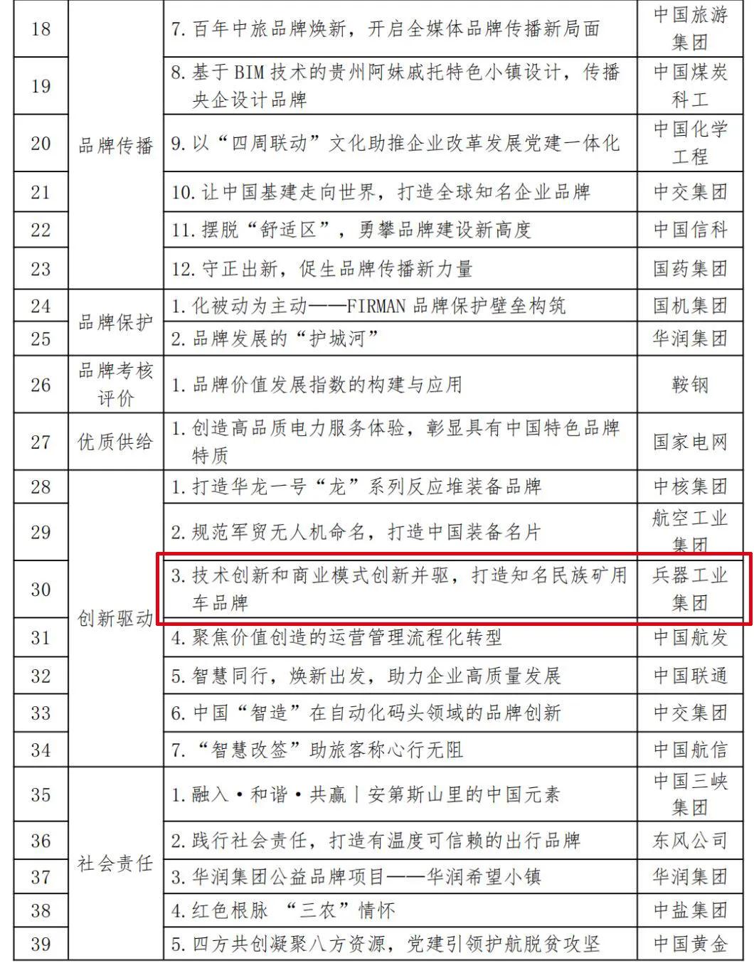 5月10日,由國家發(fā)展改革委等7部門和上海市政府共同主辦,國務(wù)院國資委特別支持的2021年中國品牌日活動(dòng)在上海舉辦。 活動(dòng)現(xiàn)場,國資委指導(dǎo)舉辦了中國企業(yè)品牌建設(shè)分論壇,會(huì)上發(fā)布了《2020年度中央企業(yè)品牌建設(shè)發(fā)展報(bào)告》、2020年度100個(gè)國有企業(yè)品牌建設(shè)典型案例和100個(gè)優(yōu)秀品牌故事。中國兵器工業(yè)集團(tuán)北重集團(tuán)的“技術(shù)創(chuàng)新和商業(yè)模式創(chuàng)新并驅(qū),打造知名民族礦用車品牌”入選2020年度100個(gè)國有企業(yè)品牌建設(shè)典型案例,中國兵器工業(yè)集團(tuán)北方公司的微電影《大山里升起的希望》入選2020年度100個(gè)優(yōu)秀品牌故事。 《2020年度中央企業(yè)品牌建設(shè)發(fā)展報(bào)告》分析了當(dāng)前中央企業(yè)加強(qiáng)品牌建設(shè)的形勢(shì)要求,從戰(zhàn)略引領(lǐng)、專業(yè)運(yùn)營、支撐保障、組織管控、全球推廣5個(gè)方面總結(jié)了中央企業(yè)年度品牌建設(shè)進(jìn)展。 2020年度100個(gè)國有企業(yè)品牌建設(shè)典型案例和100個(gè)優(yōu)秀品牌故事,匯集企業(yè)優(yōu)秀經(jīng)驗(yàn)做法,豐富國企品牌資源池,促進(jìn)企業(yè)相互學(xué)習(xí)借鑒,加快提高品牌管理專業(yè)化水平。 2020年度100個(gè)國有企業(yè) 品牌建設(shè)典型案例 來源/國資小新 |