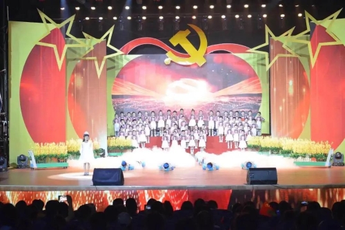 演出共分為三個(gè)篇章:“迎建黨百年、傳兵工精神”“憶長(zhǎng)征歲月、夢(mèng)璀璨中國(guó)”“承紅色基因、展幼教初心”。演出過(guò)程中掌聲不斷,高潮迭起,有合唱,有情景劇,有舞蹈,有快板,全科共361名演出人員,孩子們個(gè)個(gè)落落大方,神采飛揚(yáng),《在燦爛陽(yáng)光下》《燈火里的中國(guó)》《兵工情》,銘記紅色歷史,引導(dǎo)孩子們從小繼承革命傳統(tǒng),傳承兵工精神”?!洞禾斓陌爬佟贰段覑?ài)北京天安門(mén)》《水墨丹青繪祖國(guó)》《長(zhǎng)征路上》一首首歌曲鏗鏘有力,一段段回憶激蕩人心,師幼同臺(tái)唱出了對(duì)黨對(duì)祖國(guó)的熱愛(ài)和崇敬之情,讓人們感受到孩子們爭(zhēng)做新時(shí)代紅色接班人的信念、決心?!栋褠?ài)獻(xiàn)給咱的娃》《未來(lái)的保衛(wèi)者》《炫彩青春》引導(dǎo)孩子們從小繼承革命傳統(tǒng),傳承紅色基因,讓紅色教育點(diǎn)亮童年,讓紅色精神代代相傳?!皞鞒屑t色基因,紅色精神代代相傳。”