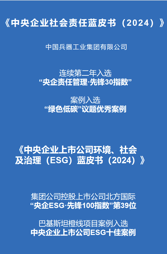 國有企業(yè)社會責任平行論壇現(xiàn)場發(fā)布了《中央企業(yè)社會責任藍皮書(2024)》《中央企業(yè)海外環(huán)境、社會及治理(ESG)藍皮書(2024)》《中央企業(yè)上市公司環(huán)境、社會及治理(ESG)藍皮書(2024)》等系列成果。其中,集團公司連續(xù)第二年入選“央企責任管理·先鋒30指數(shù)”榜單,集團公司案例入選“綠色低碳”議題優(yōu)秀案例,所屬控股上市公司北方國際入選“央企ESG·先鋒100指數(shù)”第39位,巴基斯坦橙線項目案例入選中央企業(yè)上市公司ESG十佳案例。