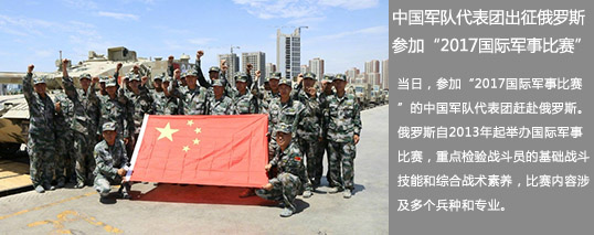 “國際軍事比賽-2017”由俄羅斯軍方牽頭組織,首屆比賽于2013年在俄境內(nèi)舉行。2017年,應(yīng)俄羅斯聯(lián)邦國防部邀請,我軍派出陸軍、海軍、空軍的8支部(分)隊(duì)組成代表團(tuán),參加8個(gè)項(xiàng)目的比賽,其中5個(gè)項(xiàng)目將自帶國產(chǎn)武器...[詳細(xì)]